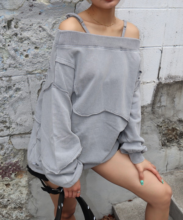 > 2way damage offshoulder pullover