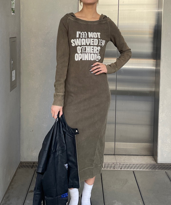 【ロゴプリントフードワンピース】