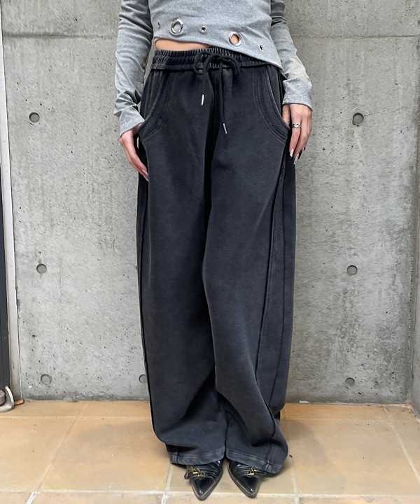 ヴィンテージライクな加工感が目を引く、ステッチデザインのスウェットパンツ。