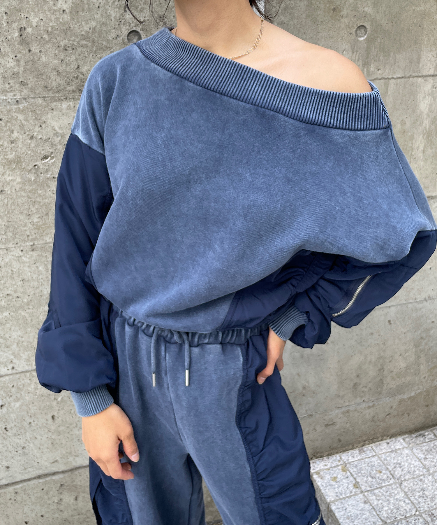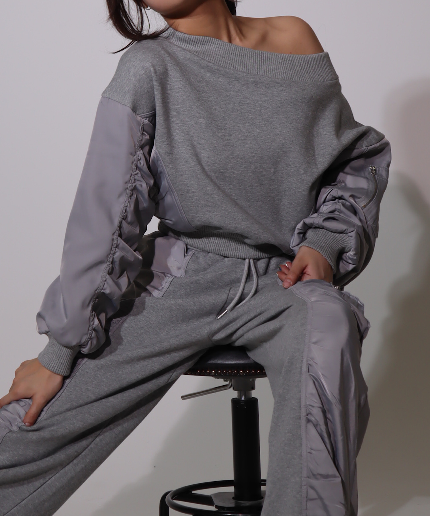 ナイロン素材がドッキングされていたり、ギャザーやポケットが付いた