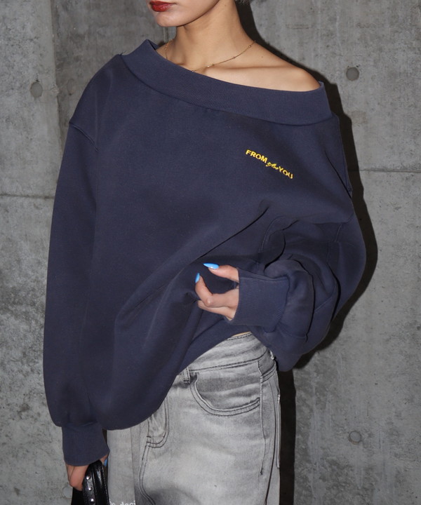 裏起毛素材を使用した、ワンショルダーデザインのビッグプルオーバー。