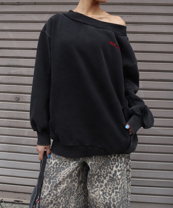 肩見せが抜け感を演出し、ルーズなビッグシルエットがこなれた印象に!