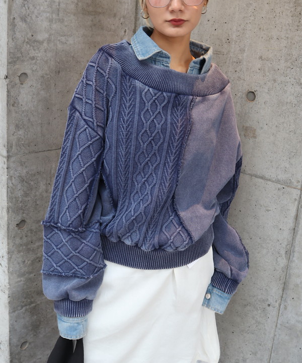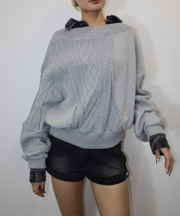 【デニム衿ショート丈ニット】